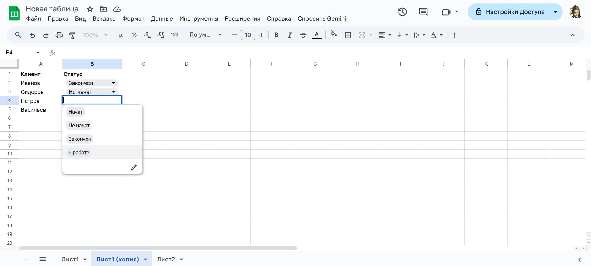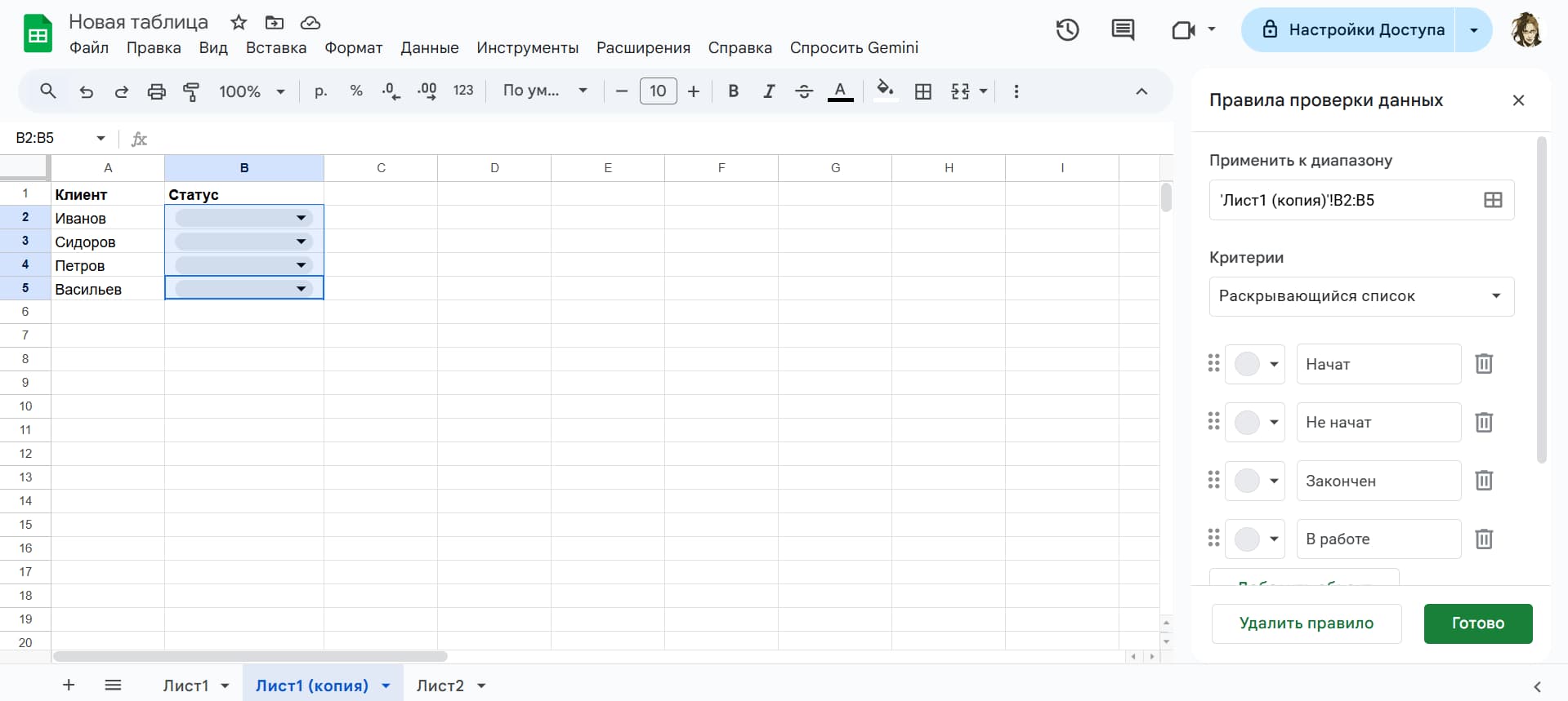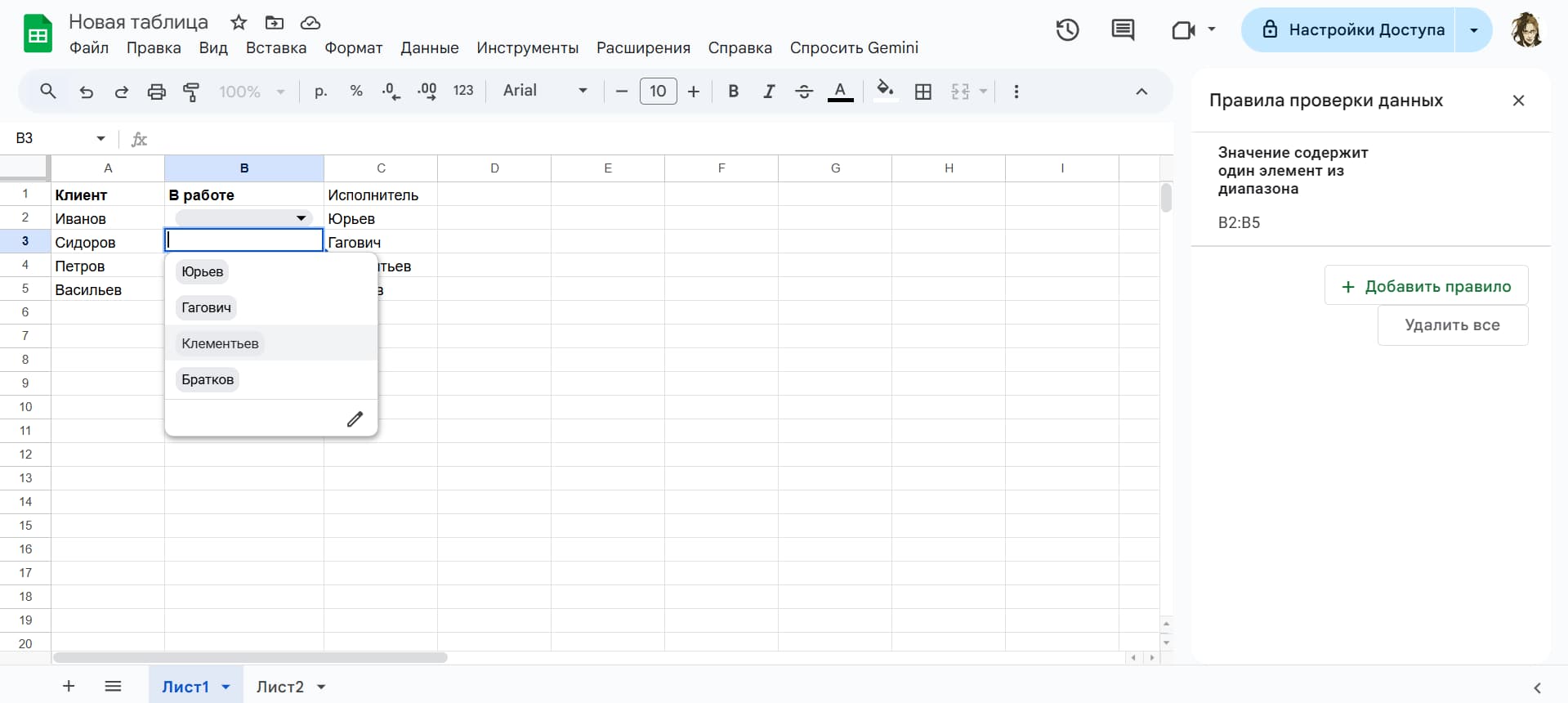 Выпадающие списки в Google Таблицах — это мощный инструмент для стандартизации данных и повышения эффективности работы. Их создание, настройка и применение к таблице занимает всего несколько кликов, а возможность редактирования и удаления делает эту функцию гибкой и удобной в использовании. Освоив эту функцию, вы значительно упростите ввод информации и сократите количество ошибок в ваших документах.