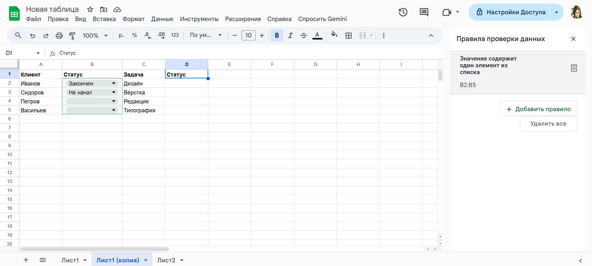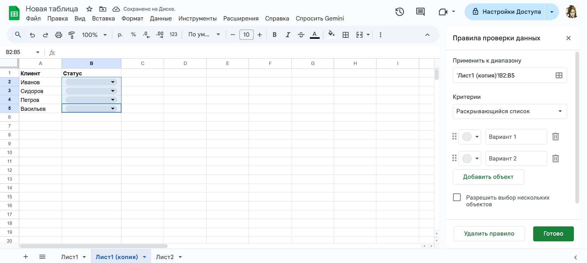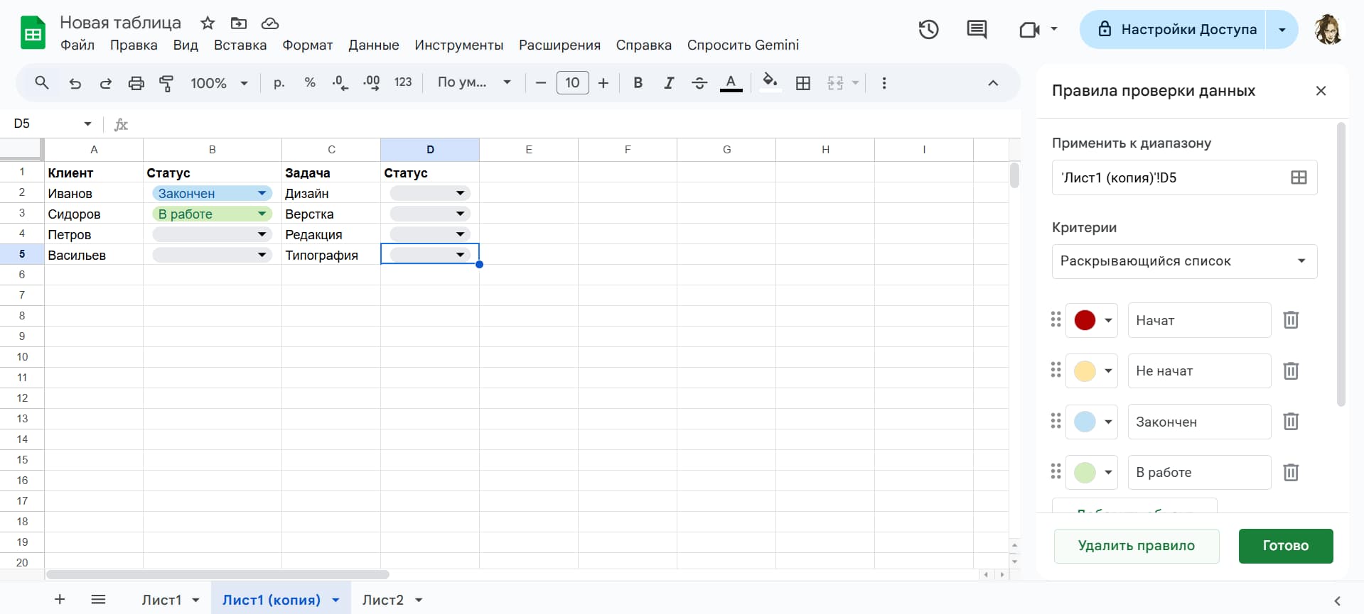 Выпадающие списки в Google Таблицах — это мощный инструмент для стандартизации данных и повышения эффективности работы. Их создание, настройка и применение к таблице занимает всего несколько кликов, а возможность редактирования и удаления делает эту функцию гибкой и удобной в использовании. Освоив эту функцию, вы значительно упростите ввод информации и сократите количество ошибок в ваших документах.